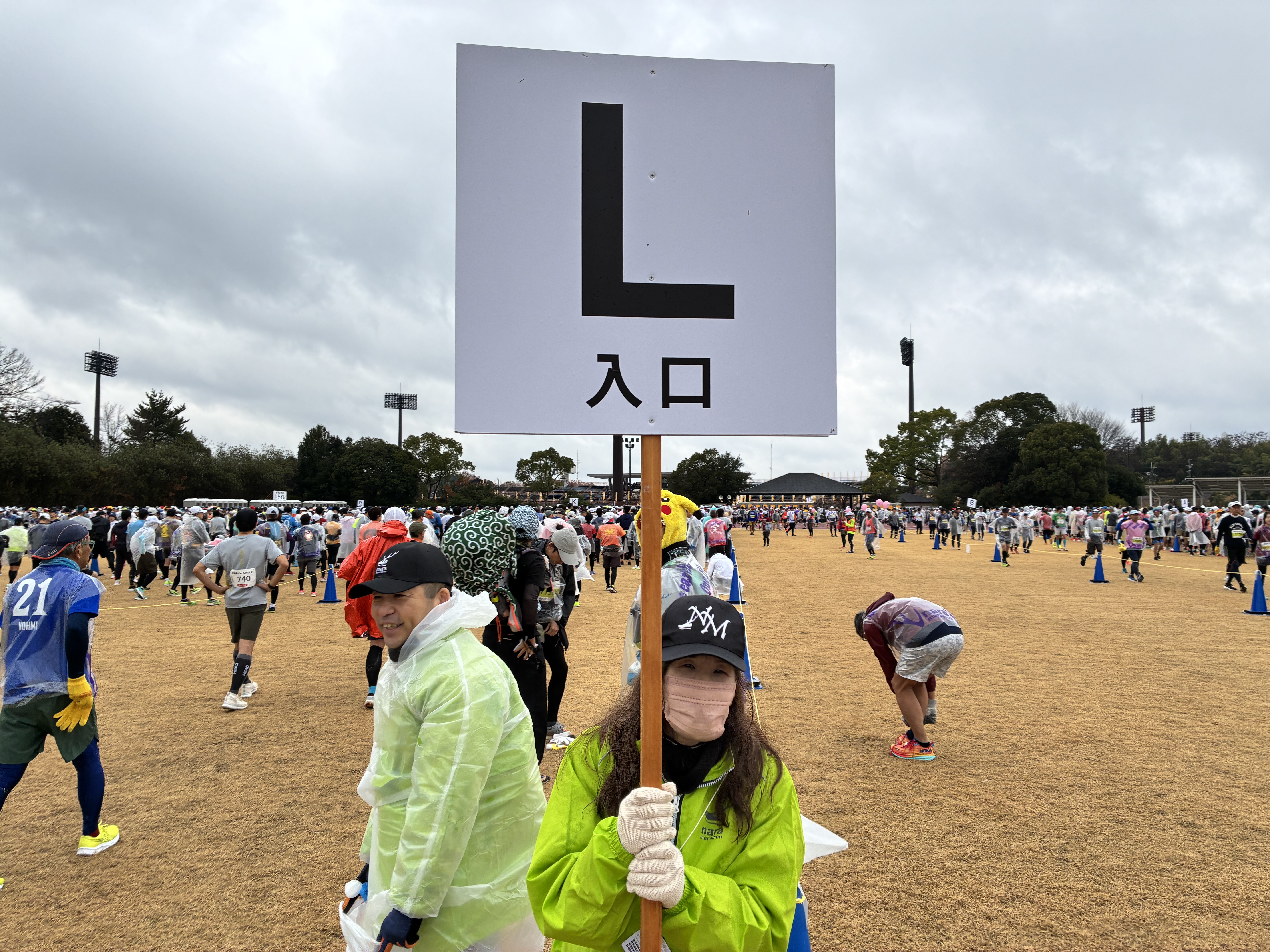 当日、我々の集合場所はココ。今回1万人以上の参加があったみたいで、我々のグループは15分ほど遅れてのスタートとなりました。幸いだったのは、スタート時間には雨が止んでいたこと。そして、幸いじゃなかったのは、これで言い訳できんくなった事ですかね笑