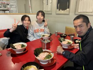 風呂の後はみずき姉の大好きなラーメンへ。みずき妹の穴を埋めるように応援に来てくれたウチのスタッフのリミちゃんが漁夫の利でラーメンゲットしてます。