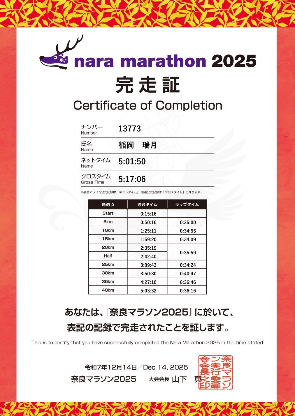 では、奈良マラソンの報告でしたー!